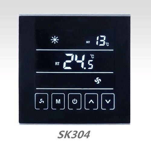 The SK304 series thermostat are widely used to control the terminals of central air-conditioning system in the business, industrial and civil constructions, such as fan coil, motorized valve and air damper.